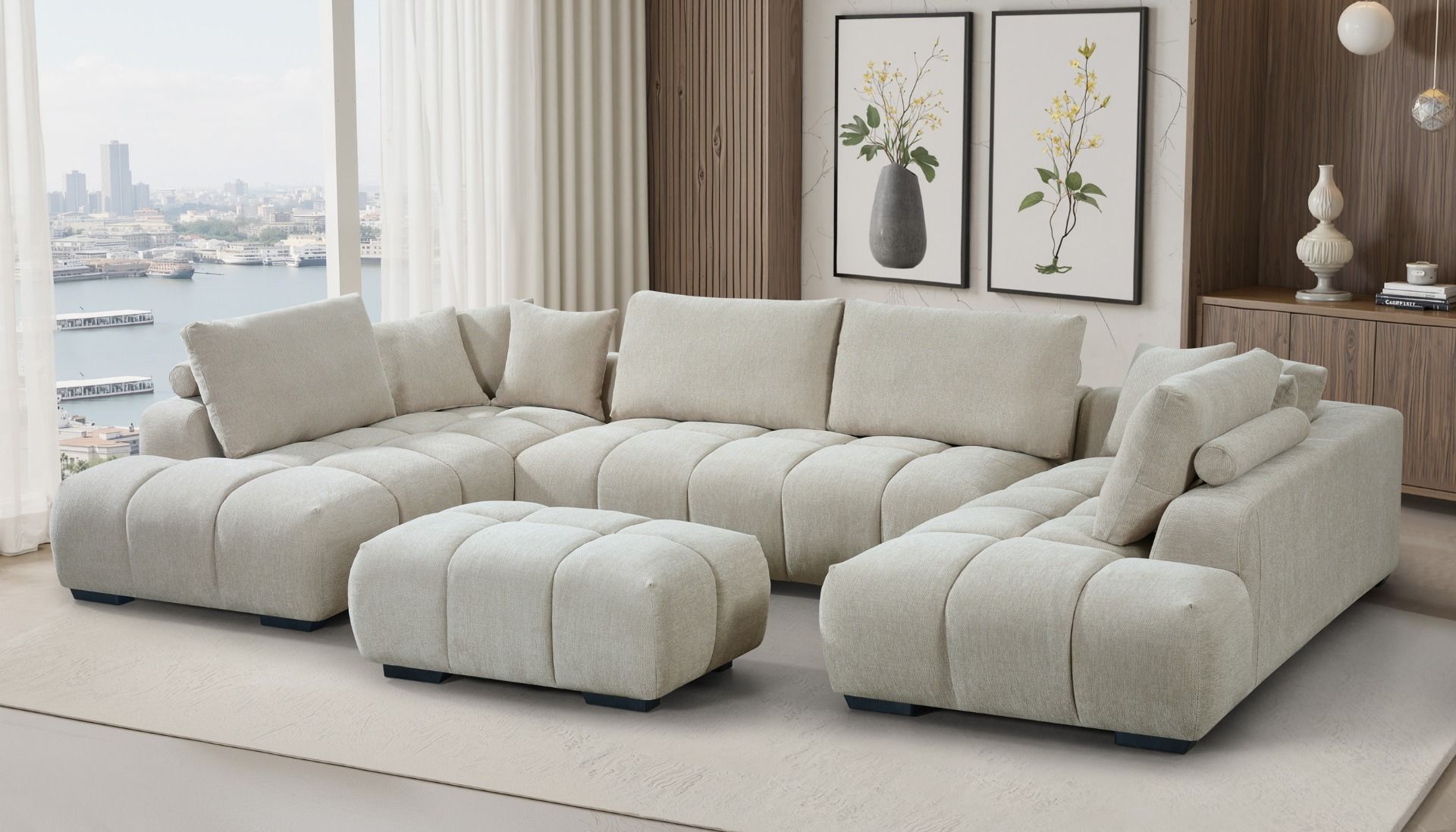 Suosittu Dumbo avokulmasohva nyt kampanjahintaan ihastuttavalla vaalean beigen värisellä kangasverhoilulla
