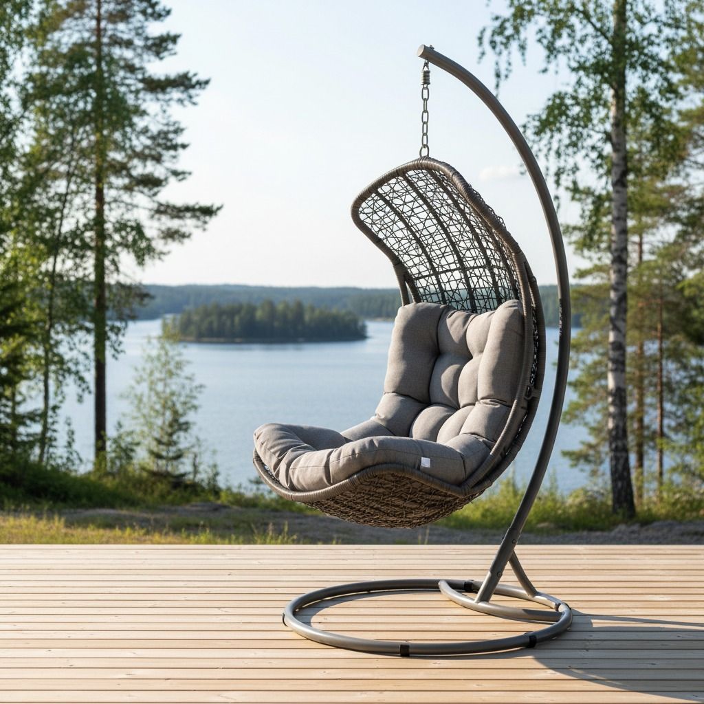 Hintaan sisältyy kuvan riipputuoli sekä istuinpehmuste. Ei sisällä telinettä. Tämä tuoli on tarkoitus kiinnittää riippumaan katosta.