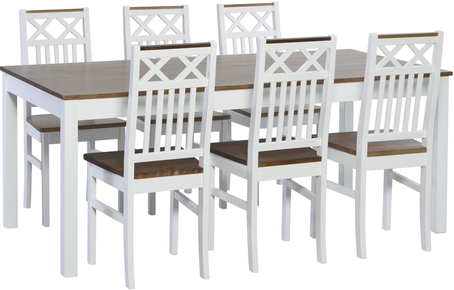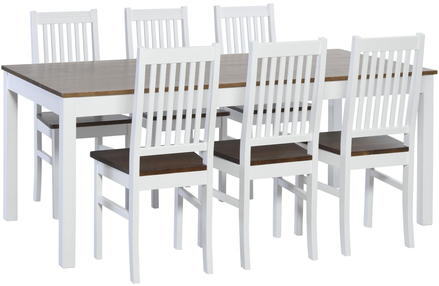 Koivu ruokaryhmä 180x90 + 6 Luoto tuolia, valko-harmaa