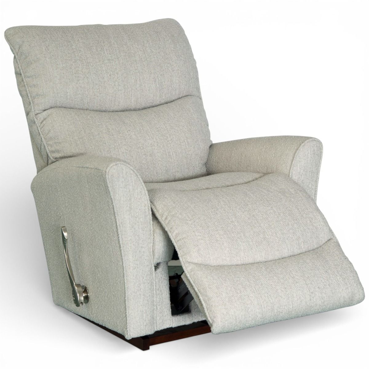 Rowan tuolissa on laadukas vaaleanharmaa kangasverhoilu sekä La-Z-Boyn suosittu ja kestävä reclinermekanismi. Voit säätää jalkaosaa sekä selkänojaa erikseen. Tuoli keinuu ja ostamalla siihen lisävarusteena myytävän pyörivän jalustan, niin tuolin saa myös pyörimään.