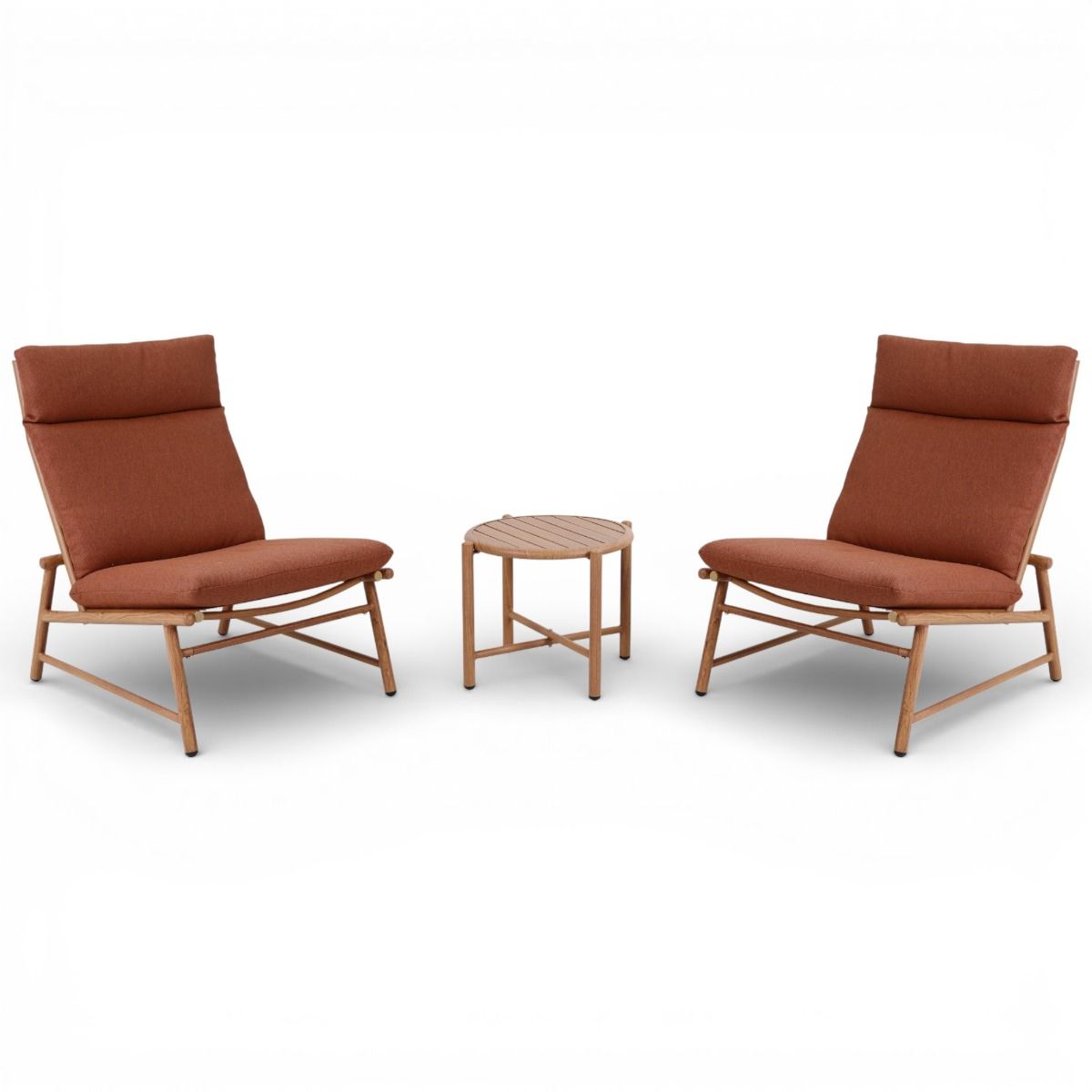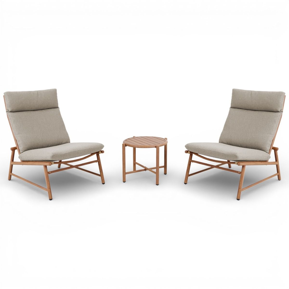 Kalusteissa on alumiinista valmistettu runko eli runko on ruostumaton ja se kestää siksi mainiosti Suomen vaihtelevia sääolosuhteita. Istuinpehmusteen ja selkätyynyn alla on säänkestävä Textilene-tausta.