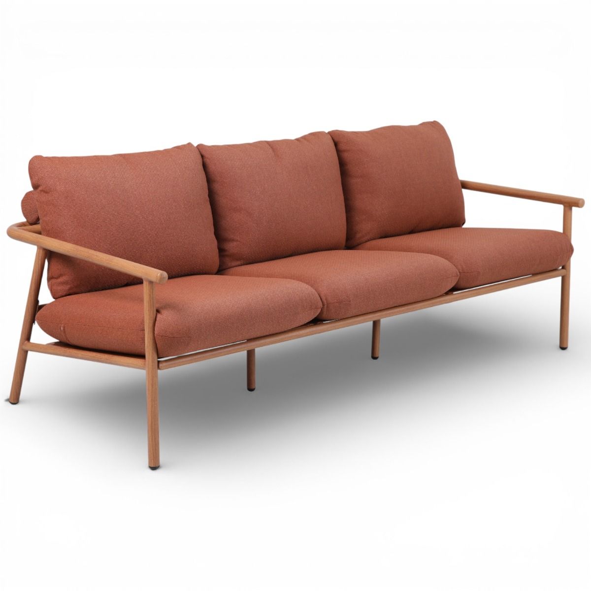 Upea Vanamo sohva ulkokäyttöön upealla puun näköisellä alumiinirungolla ja muhkeilla tyynyillä